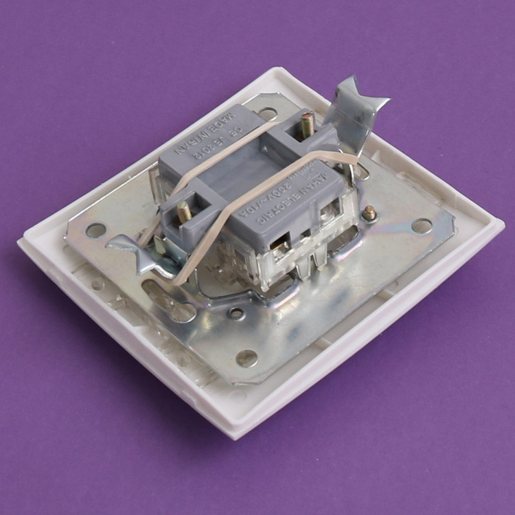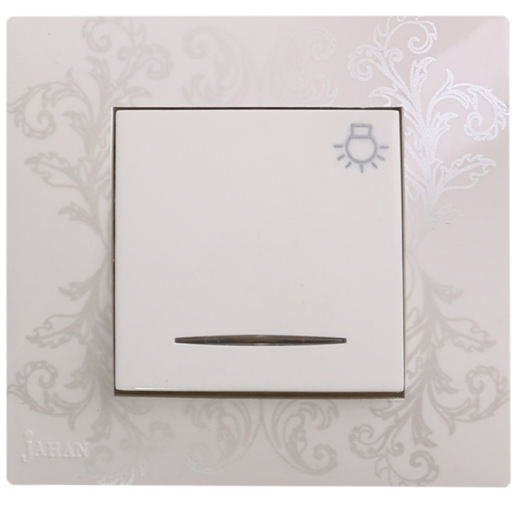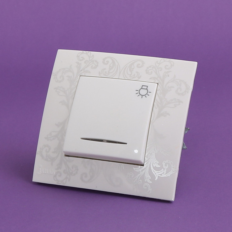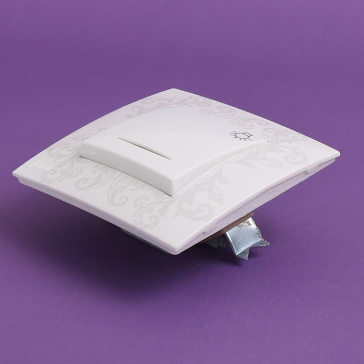 کلید تایمر راهپله دارای مکانیزم از جنس پلی آمید دارای قاب از جنس پلی کربنات به رنگ سفید با طرح مینیاتوری