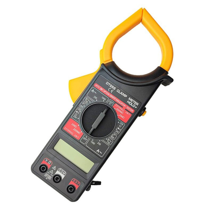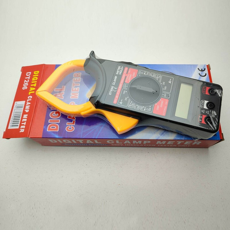 مولتی متر های کلمپی یا کلمپ متر ها ، با ایده ای مبتنی بر الکترومغناطیس پا به عرصه تولید گذاشته اند ، اساس اندازه گیری جریان بطور ساده ،القای جریان الکتریکی در حلقه یا همان کلمپ ،توسط جریان گذرنده از تک رشته سیمی که از درون آن می گذرد ، می باشد . اندازه گیری جریان گذرنده از یک رشته سیم ، بدون آنکه به عایق و یا رسانای آن سیم خدشه ای وارد شود ، به تعمیرکاران و یا افرادی که در ارتباط با برق رسانی فعالیت دارند کمک شایانی در جهت انجام صحیح کارو تسریع در دستیابی به نتیجه می کند.این دستگاه، تا 1000آمپر جریان الکتریکی را اندازه گیری کرده و علاوه بر آن کمیت های ولتاژ و مقاومت الکتریکی را نیز اندازه گیری می کند. مولتی متر دیجیتال DT266 جزء یکی از کاربردی ترین و اصلی ترین تجهیزات دقیق تست و اندازه گیری جهت تعمیرات، تولید و راه اندازی در آموزشگاه ها، آزمایشگاه ها، صنایع، کارخانجات، کارگاه های تولیدی و تعمیرگاه های برق و الکترونیک محسوب میشود و از طریق آن میتوان ولتاژ، جریان، مقاومت الکتریکی، ظرفیت خازنی، فرکانس و دما را اندازه گیری نمود.