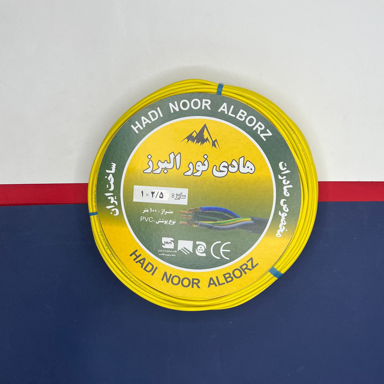 یک جفت سیم 1/5 و 2/5 سبز و زرد هادی نور البرز که سیم 1/5 دارای 30 رشته و سیم 2/5 دارای 50 رشته میباشد،عمده مصرف سیم های افشان تک رشته برای سیم کشی توکار( روشنایی لوستر ، سقف کاذب ، نور مخفی ، کناف ، هالوژنها ، دیواری و سقفی و ….)