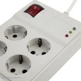 نشانگر led که روی دستگاه تعبیه شده برای نمایش تاخیر و همچنین وضعیت برق است که شما را از برق رسانی با ولتاژ غیراستاندارد مطلع کند. استفاده از محافظ ولتاژ پارت الکتریک کد 940 برای سیستمهای کامپیوتری، صوتی یا تصویری مناسب بوده و در بسیاری از خانهها کاربرد مناسبی دارد. روی محافظ ولتاژ پارت الکتریک کد 940 یک دکمه خاموش و روشن وجود دارد و برای اینکه بتوان به راحتی برق را قطع و وصل کرد، از این دکمه میتوان استفاده کرد. برای اینکه بتوان از چند ابزار برقی در یک قسمت به طور همزمان استفاده کرد، بهتر است از چندراهی برق یا محافظ ولتاژ بهره برد. چندراهی که در تصویر مشاهده میکنید دارای چهار عدد پریز بوده که هر کدام دارای ارت است؛ پریز ارت دار ایمنی زیادی دارد و از جرقه زدن در هنگام ورود و خروج دوشاخه جلوگیری میکند.