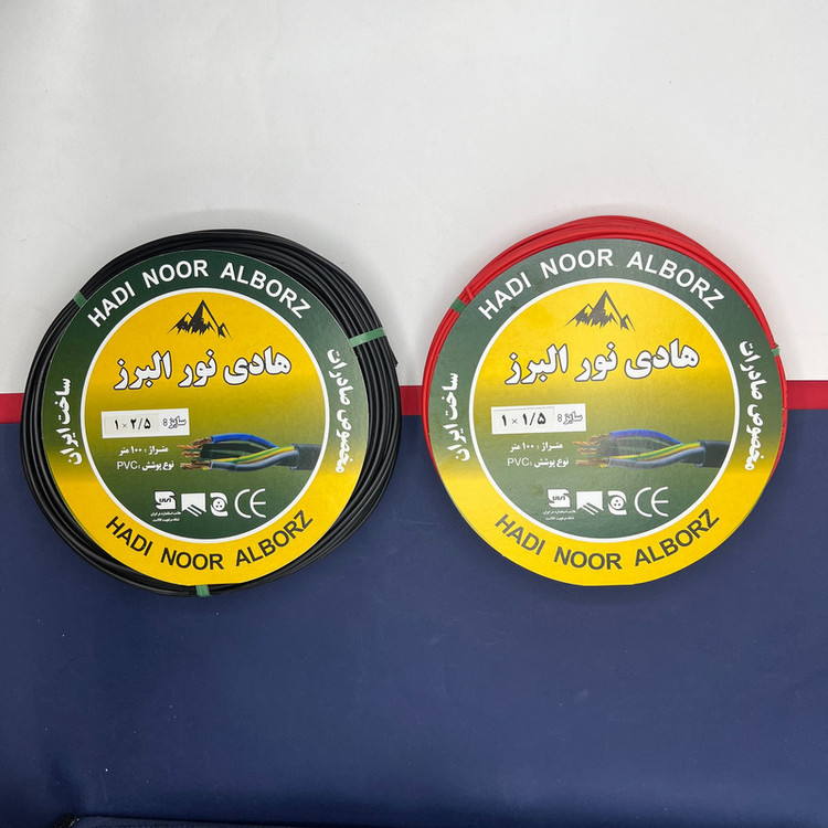 یک جفت سیم 1/5 و 2/5 قرمز و مشکی هادی نور البرز که سیم 1/5 دارای 30 رشته و سیم 2/5 دارای 50 رشته میباشد،عمده مصرف سیم های افشان تک رشته توکار(درون و روشنایی(سیمکشی روشنایی لوستر ، سقف کاذب ، نور مخفی ،