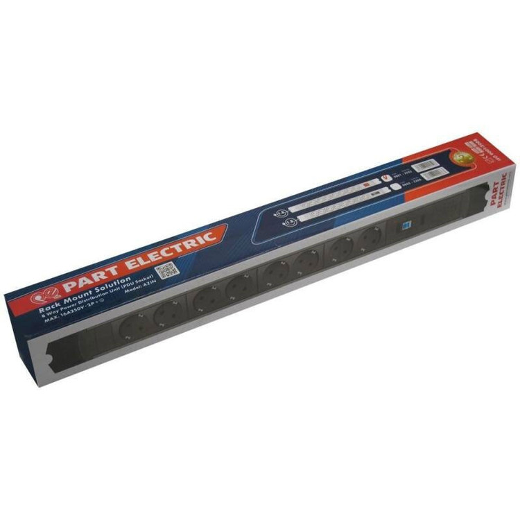 چند راهی برق 6 خانه کلید دار مدل رک مونت پارت الکتریک یک چند راهی ولتاژ تکفاز کاربردی است. پارت الکتریک در ساخت مغزی این محصول از 6 هسته سرامیکی جداگانه استفاده کرده است. این مدل دارای نشان استاندارد ملی ایران و گواهی نامه استاندارد اروپا CE است و مناسب کاربردهای خانگی و اداری و به طور خاص برای دفاتر اداری که تعداد دو شاخههای برق بسیار است، بهترین است. این چندراهی طراحی باریکی دارد و میتوان آن را به دیوار نیز نصب کرد. پریزهای این مدل به صورت 45 درجه قرار گرفتهاند تا امکان استفاده از تمامی پریزها به صورت همزمان امکان پذیر شود. بر روی بدنه یک کلید با نشانگر LED به منظور روشن و خاموش کردن رابط تعبیه شده است.