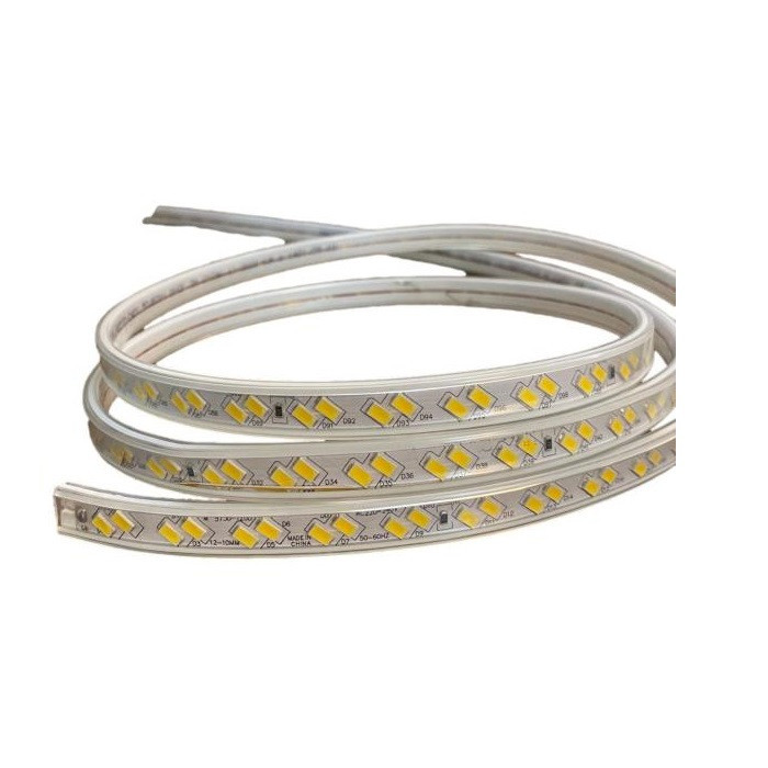 ریسه شلنگی ال ای دی دو لاین کد 5730 با برق مستقیم شهر روشن می شود این محصول داری چیپ های با کیفیت و با تراکم 120 ال ای دی در هر متر می باشد. محافظ پلاستیکی که به شکل محدب بر روی چیپ ها قرار دارد ، بعنوان لنز ، پرتاب نور محصول را تقویت می نماید. به همین دلیل این محصول دارای نور زیاد و خیره کننده ای می باشد. از دیگر ویژگی این ریسه ها میتوان به ضد آب بودن محصول و کوتاه کردن آن در هر متر اشاره نمود. از این نوع ریسه ها برای روشنایی ، نورپردازی و اجرای نور مخفی در راویز های سقفی و کناف، دور تابلوها، دور پنجره ها، دور کتیبه ها، روشنایی پله ها، حواشی جداول، ساخت المان های نوری شهری و آذین بندی محیط های داخلی و خارجی استفاده می شود. (آفتابی = نور زرد = 3000 کلوین ، مهتابی = نور سفید = 6500 کلوین )