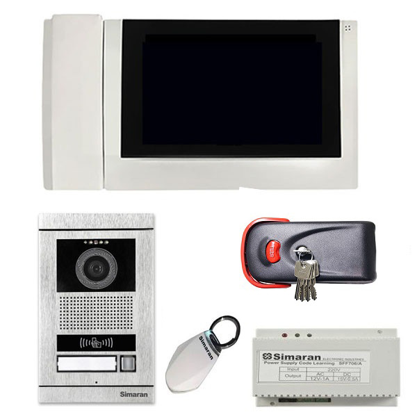 اقلام همراه: یک عدد مانیتور 7 اینچ تمام لمسی سیماران با وای فای مدل 78m100/wifi یک عدد پنل یک واحدی کارت خوان فرداد سیماران مدل vfbc1/n یک عدد تگ یک عدد قفل برقی 1093 یوتاب یک عدد ترانس تغذیه تصویری سیماران مدل sff730