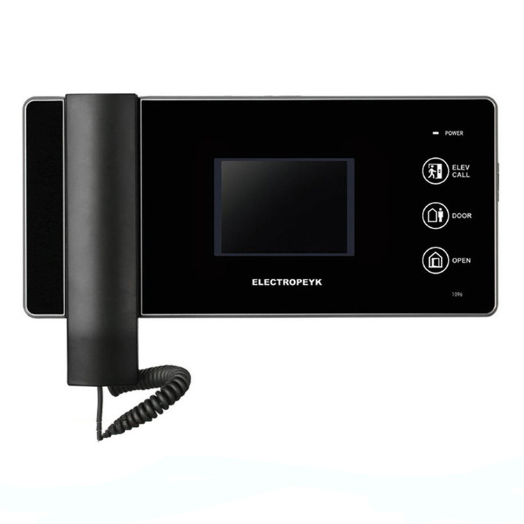 آیفون تصویری الکتروپیک مدل 1096 دارای قابی مستطیلی با دو رنگ سفید و مشکی می باشد که جهت شناسایی راحت آیفون آن را به سه بخش اصلی تقسیم می کنیم. از راست به چپ، بخش اول، کلید های لمسی، جهت باز کردن درب و فراخوانی آسانسور قرار دارد. در قسمت میانی، صفحه نمایش لمسی رنگی می باشد در ابعاد 4.3 اینچ، که به راحتی می توان تنظیمات دستگاه را در آن انجام داد و در بخش پایانی گوشی جهت پاسخگویی قرار گرفته است.