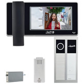 مجموعه کامل دربازکن تصویری لمسی یک واحدی الکتروپیک این مجموعه شامل: یک عدد پنل دم دری لمسی مدل رندا یک واحدی یک عدد گوشی 7 اینچ تمام لمسی حافظه دار مدل 996 مشکی یک عدد منبع تغذیه و یک عدد قفل زنجیری می باشد. پنل لمسی رندا مدل 1195 دارای قابلیت دید در شب و کلید زنگ لمسی می باشد .همچنین این پنل قابلیت تنظیم صدا را دارد و در هنگام نصب نیز میتوان دوربین آنرا را در جهت مناسب برای دید بهتر تنظیم نمود.این پنل در برابر دما و رطوبت مقاوم بوده و در برابر بارش آب از هر جهت و زاویه ای عایق می باشد. بدنه آن از جنس آلومینیوم میباشد و دارای استاندارد IP34 می باشد. گوشی ( مانیتور ) 7 اینچ تمام لمسی مدل 996 قابلیت اتصال به دو پنل دم دری و دو دوربین امنیتی را دارد همچنین قابلیت فراخوان آسانسور و بازکردن درب پارکینگ و ارتباط داخلی را نیز دارد. گوشی مدل 996 الکتروپیک دارای حافظه داخلی بوده و امکان اتصال کارت حافظه را نیز دارد و این گوشی قابلیت ذخیره عکس ، ذخیره فیلم ، ضبط فیلم با صدا را دارد .این گوشی دارای 10 ملودی زنگ میباشد که میتوان در صورتی که به دو پنل دم دری متصل باشد برای هر پنل ، یک ملودی انتخاب نمود. این مجموعه دارای منبع تغذیه و قفل زنجیری نیز می باشد . این پکیج کامل بوده و با خرید این مجموعه دیگر نیازی به خرید سایر اقلام نخواهید داشت.