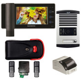 پکیج کامل دربازکن یک واحدی تصویری الکتروپیک این پکیج شامل پنل بیرونی مدل 1086 یک واحدی ، گوشی تصویری 7 اینچ مدل 1294 ، قفل برقی یوتاب ریموتدار و منبع تغذیه مدل 386 می باشد. پنل 1086 الکتروپیک قابلیت دید در شب دارد و دارای سويیچ ضد سرقت می باشد و همچنین قابلیت تنظیم دوربین در چهار جهت در هنگام نصب را دارد ،نوارهای آب بندی دور پنل از نفوذ باران و گرد و غبار به داخل پنل جلوگیری میکند . گوشی تصویری ( مانیتور ) 7 اینچ مدل 1294 دارای دکمه های لمسی می باشد از ویژگی های این گوشی میتوان به قابلیت عکسبرداری و فیلمبرداری و اتصال کارت حافظه اشاره کرد البته این گوشی دارای حافظه داخلی میباشد اما درصورت نیاز به ضبط فیلم با صدای مراجعه کننده باید کارت حافظه داخل آن قرار گیرد .از دیگر امکانات این گوشی قابلیت اتصال به دو پنل بیرونی و دو دوربین امنیتی می باشد که بسیار پرکاربرد می باشد. قفل برقی ریموتدار یوتاب که تولید شده توسط شرکت یوتاب ( از زیر مجموعه های شرکت الکتروپیک ) می باشد. یکی از با کیفیت ترین محصولات قفل برقی تولید داخل است که با مقاومت و امنیت بسیار بالا به همراه ریموت کنترل جهت استفاده بر روی درب های حیاط منازل و مجتمع های مسکونی و تجاری و درب پارکینگ مورد استفاده قرار میگیرد . وزن هر قفل ریموتی یوتاب حدود 3 کیلوگرم است و ابعاد آن 11x9x20 سانتی متری میباشد جنس بدنه قفل از فولاد ضد زنگ و بدلیل استفاده از ورق گالوانیزه از مقاوت بسیار بالایی برخوردار است ، رنگ این قفل مشکی رنگ است که شاسی قرمز رنگ برای بازکردن درب به صورت دستی برای آن تعبیه شده است. قفل ریموت دار یوتاب دارای 5 عدد کلید و 2 عدد ریموت الکتروپیک بهمراه یک رسیور تک کانال عرضه میگردد.امکان اضافه نمودن ریموت در این رسیور وجود دارد و میتوان آن را به تعداد زیاد تکثیر کرد امکان تعویض مغزی قفل داخلی و بیرونی ، قابلیت نصب و راه اندازی به صورت عمودی یا افقی عدم باز شدن قفل در اثر لرزش زیاد و حتی ضربه از دیگر ویژگی های این قفل می باشد .قابلیت نصب و راه اندازی به صورت عمودی و افقی قابلیت نصب و تنظیم مغزی قفل بیرونی 50 تا 80 میلیمتر را نیز دارد.پنل بیرونی ،گوشی تصویری و منبع تغذیه دارای 3 سال گارنتی و قفل برقی یوتاب دارای 2 سال گارانتی شرکتی می باشد .این پکیج کامل بوده و با خرید آن نیازی به خرید سایر اقلام نخواهید داشت.
