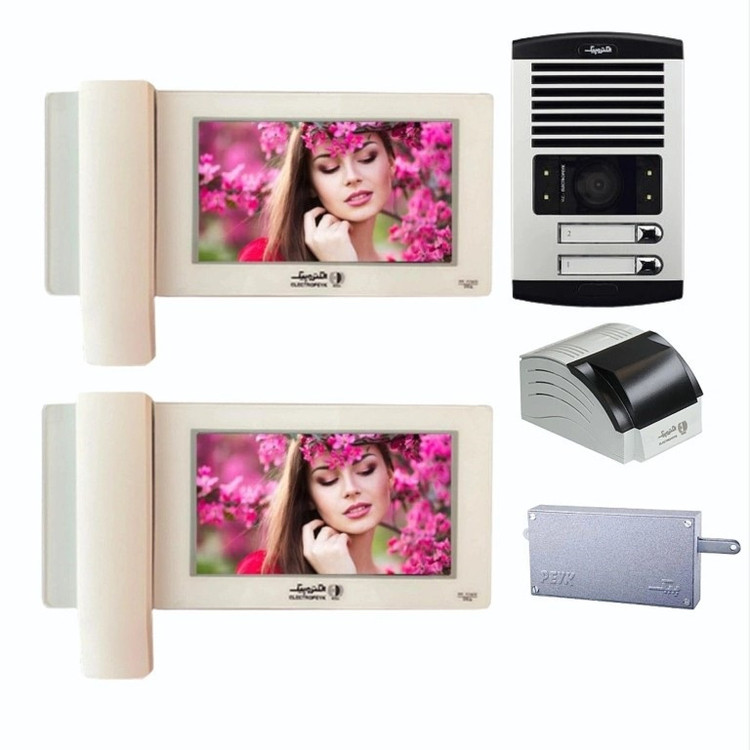 مجموعه دربازکن الکتروپیک مدل FD/1086/2/996x2-white.شامل : پنل دم دری 1086 با قابلیت دید در شب و مجهز به چراغ LED میباشد . جنس بدنه این پنل آلومینیوم میباشد و دارای سوییچ ضد سرقت است. . گوشی تصویری مدل 996 الکتروپیک دارای نمایشگر 7 اینچ تمام لمسی .قابلیت اتصال به دو پنل دم دری .قابلیت اتصال به دوربین مداربسته قابلیت فراخوانی آسانسور.دارای حافظه داخلی ضبط عکس و فیلم، با امکان ارتقا به 32 گیگابایت. همچنین این پکیج دارای منبع تغذیه مدل 386 به همراه قفل زنجیری میباشد . شرکت الکتروپیک یکی از شناخته شده ترین برند های تولیدکننده آیفون تصویری است که با طراحی و تولید انواع درب بازکن تصویری ساده، لوکس و کاربر پسند توانسته بین رقبای خارجی و ایرانی خود جایگاه خوب و مطمئنی را برای خود داشته، و از آن استفاده تمام کمالی را برده، و باعث این امر شده که این کمپانی ها سال ها به تولید آیفون تصویری رنگی با مدل ها و رنگ های مختلف بپردازد.این پکیج کامل بوده و با خرید این مجموعه دیگر نیازی به خرید سایر اقلام نخواهید داشت.