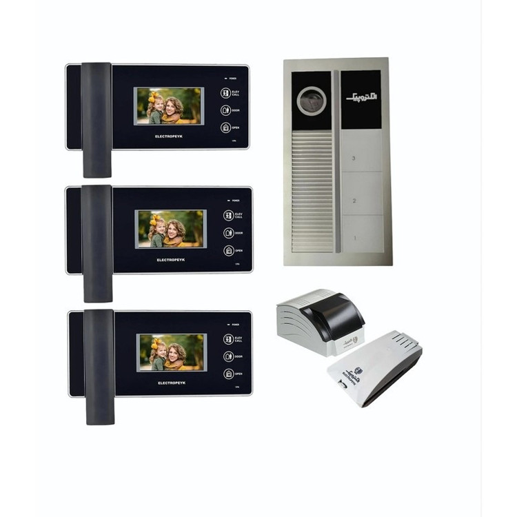 مجموعه دربازکن الکتروپیک مدل 1195/3renda/1096x3-black شامل : پنل دم دری لمسی مدل رندا با قابلیت دید در شب و مجهز به چراغ LED میباشد .این پنل در مقابل نوسانات دمایی مقاوم بوده و در برابر بارش آب از هرجهت و زاویه عایق میباشد . گوشی تصویری مدل 1096 الکتروپیک دارای نمایشگر 4/3 اینچ و دکمه های لمسی میباشد .این مدل گوشی قابلیت اتصال به دو پنل دم دری .اتصال به دوربین مدار بسته . و قابلیت فراخوانی آسانسور دارد . همچنین این پکیج دارای منبع تغذیه مخصوص پنل رندا به همراه قفل زنجیری میباشد . شرکت الکتروپیک یکی از شناخته شده ترین برند های تولیدکننده آیفون تصویری است که با طراحی و تولید انواع درب بازکن تصویری ساده، لوکس و کاربر پسند توانسته بین رقبای خارجی و ایرانی خود جایگاه خوب و مطمئنی را برای خود داشته، و از آن استفاده تمام کمالی را برده، و باعث این امر شده که این کمپانی ها سال ها به تولید آیفون تصویری رنگی با مدل ها و رنگ های مختلف بپردازد.این پکیج کامل بوده و با خرید این مجموعه دیگر نیازی به خرید سایر اقلام نخواهید داشت.