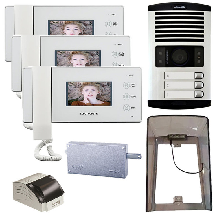 مجموعه دربازکن الکتروپیک مدل FD/1086/3/1096x3White .شامل : پنل دم دری 1086 با قابلیت دید در شب و مجهز به چراغ LED میباشد . جنس بدنه این پنل آلومینیوم میباشد و دارای سوییچ ضد سرقت است.گوشی تصویری مدل 1096 الکتروپیک دارای نمایشگر 4/3 اینچ. با قابلیت های اتصال به دو صفحه دم دری . اتصال به دوربین امنیتی .فراخوان آسانسور .دارای کلیدهای لمسی. ذخیره عکس و فیلم .ضبط فیلم با صدا . اتصال کارت حافظه .دارای 10 ملودی زنگ .شرکت الکتروپیک یکی از شناخته شده ترین برند های تولیدکننده آیفون تصویری است که با طراحی و تولید انواع درب بازکن تصویری ساده، لوکس و کاربر پسند توانسته بین رقبای خارجی و ایرانی خود جایگاه خوب و مطمئنی را برای خود داشته، و از آن استفاده تمام کمالی را برده، و باعث این امر شده که این کمپانی ها سال ها به تولید آیفون تصویری رنگی با مدل ها و رنگ های مختلف بپردازد.بارانگیر شفاف LED دار پارس صنعت ماهان از کیفیت مطلوبی برخوردار است و از پنل دم دری در برابر نور خورشید، گردوخاک، باران، برف و تگرگ محافظت می کند.چراغ های LED تعبیه شده بر روی این بارانگیر باعث افزایش دید در شب دوربین پنل آیفون می گردد.جنس بدنه این محافظ پلی کربنات UV دار می باشد که در برابر رنگ پریدگی بسیار مقاوم است. این پکیج شامل پنل دم دری+گوشی تصویری+منبع تغذیه+قفل زنجیری+محافظ بارانگیر می باشد. این پکیج کامل می باشد و با خرید آن نیازی به خرید سایر اقلام نخواهید داشت.