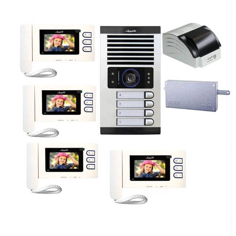 چهار عدد مانیتور تصویری مدل 797 سفید +یک عدد پنل چهار واحدی مدل 1086 +قفل زنجیری + منبع تغذیه مدل 386