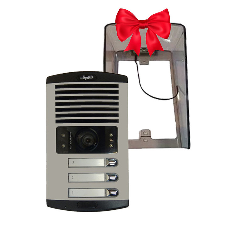 مجموعه دربازکن الکتروپیک مدل FD/1086/3/1096x3-Black .شامل : پنل دم دری 1086 با قابلیت دید در شب و مجهز به چراغ LED میباشد . جنس بدنه این پنل آلومینیوم میباشد و دارای سوییچ ضد سرقت است.گوشی تصویری مدل 1096 الکتروپیک دارای نمایشگر 4/3 اینچ. با قابلیت های اتصال به دو صفحه دم دری . اتصال به دوربین امنیتی .فراخوان آسانسور .دارای کلیدهای لمسی. ذخیره عکس و فیلم .ضبط فیلم با صدا . اتصال کارت حافظه .دارای 10 ملودی زنگ .شرکت الکتروپیک یکی از شناخته شده ترین برند های تولیدکننده آیفون تصویری است که با طراحی و تولید انواع درب بازکن تصویری ساده، لوکس و کاربر پسند توانسته بین رقبای خارجی و ایرانی خود جایگاه خوب و مطمئنی را برای خود داشته، و از آن استفاده تمام کمالی را برده، و باعث این امر شده که این کمپانی ها سال ها به تولید آیفون تصویری رنگی با مدل ها و رنگ های مختلف بپردازد.بارانگیر شفاف LED دار پارس صنعت ماهان از کیفیت مطلوبی برخوردار است و از پنل دم دری در برابر نور خورشید، گردوخاک، باران، برف و تگرگ محافظت می کند.چراغ های LED تعبیه شده بر روی این بارانگیر باعث افزایش دید در شب دوربین پنل آیفون می گردد.جنس بدنه این محافظ پلی کربنات UV دار می باشد که در برابر رنگ پریدگی بسیار مقاوم است. این پکیج شامل پنل دم دری+گوشی تصویری+منبع تغذیه+قفل زنجیری+محافظ بارانگیر می باشد. این پکیج کامل می باشد و با خرید آن نیازی به خرید سایر اقلام نخواهید داشت.