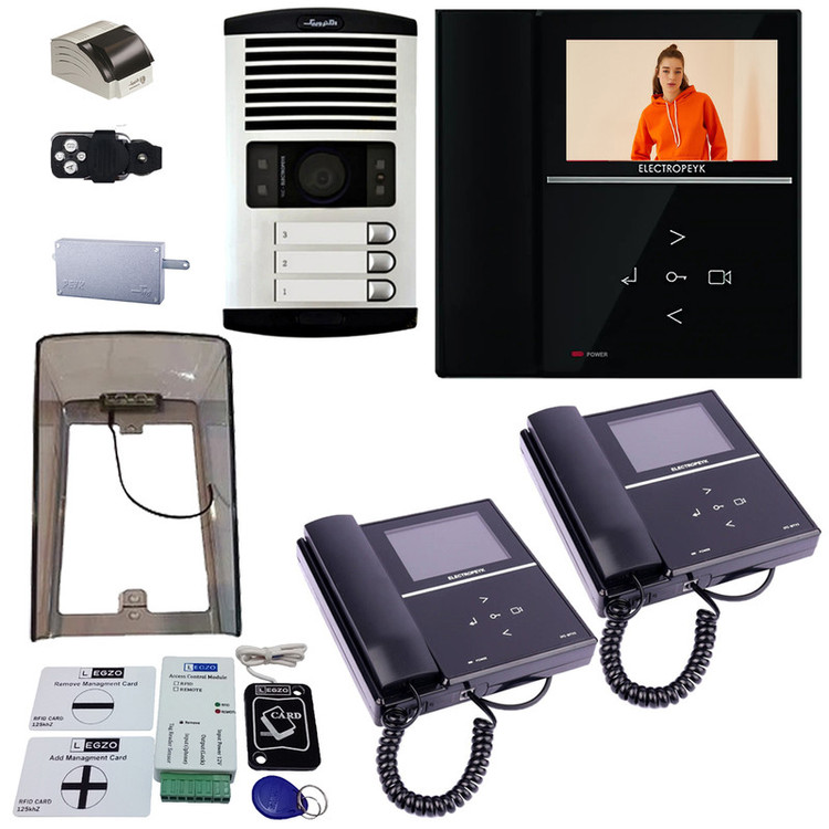 مجموعه دربازکن الکتروپیک مدل FD/1086/3/592x3Black.شامل : پنل دم دری 1086 با قابلیت دید در شب و مجهز به چراغ LED میباشد . جنس بدنه این پنل آلومینیوم میباشد و دارای سوییچ ضد سرقت است.گوشی تصویری مدل 592 الکتروپیک دارای نمایشگر 4 اینچ. دارای کلیدهای لمسی . قابلیت افزودن حافظه جانبی: تا 16 گیگا بایت با کارت (SD) . قابلیت عکس برداری و ضبط فیلم موجود در دو رنگ سفید و مشکی..همچنین این پکیج دارای منبع تغذیه مدل 386 به همراه قفل زنجیری میباشد .شرکت الکتروپیک یکی از شناخته شده ترین برند های تولیدکننده آیفون تصویری است که با طراحی و تولید انواع درب بازکن تصویری ساده، لوکس و کاربر پسند توانسته بین رقبای خارجی و ایرانی خود جایگاه خوب و مطمئنی را برای خود داشته، و از آن استفاده تمام کمالی را برده، و باعث این امر شده که این کمپانی ها سال ها به تولید آیفون تصویری رنگی با مدل ها و رنگ های مختلف بپردازد.بارانگیر شفاف LED دار پارس صنعت ماهان از کیفیت مطلوبی برخوردار است و از پنل دم دری در برابر نور خورشید، گردوخاک، باران، برف و تگرگ محافظت می کند.چراغ های LED تعبیه شده بر روی این بارانگیر باعث افزایش دید در شب دوربین پنل آیفون می گردد.جنس بدنه این محافظ پلی کربنات UV دار می باشد که در برابر رنگ پریدگی بسیار مقاوم است.ماژول درب بازکن کارتی ریموتی لگزو مدل DB201 :این ماژول دارای 2 عدد کارت مدیریت دستگاه است. کاربر توسط این دو کارت قادر خواهد بود تا کارت ها، تگ ها و ریموت های جدید را به دستگاه معرفی کند یا آنها را از حافظه دستگاه حذف نماید. به همراه آن 1 عدد کارت ، 1 عدد تگ جاسویچی و 1 عدد ریموت نیز قرار دارد که در صورت نیاز به تعداد بیشتر میتوانید هر کدام از آنها را به صورت جداگانه خریداری کنید و به دستگاه معرفی نمایید .همچنین اگر از قبل ریموت دارید و برای درب پارکینگ یا کرکره برقی استفاده می کنید، می توانید یکی از دکمه های بیکار ریموت را روی دستگاه ذخیره کنید و از این قابلیت دستگاه بهرمند شوید.