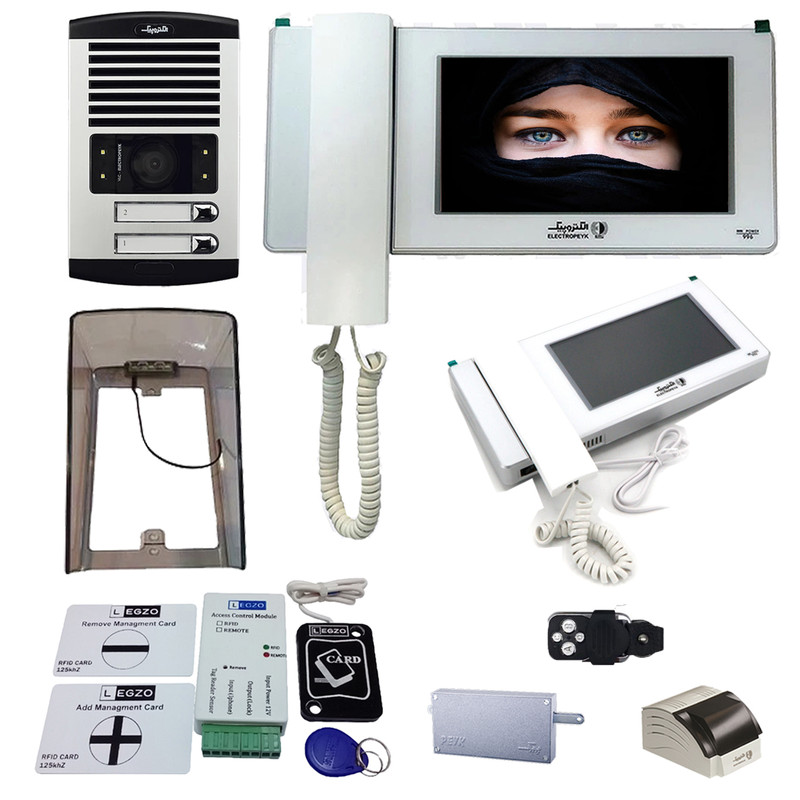 مجموعه دربازکن الکتروپیک مدل FD/1086/1/996x2-White.شامل : پنل دم دری 1086 با قابلیت دید در شب و مجهز به چراغ LED میباشد . جنس بدنه این پنل آلومینیوم میباشد و دارای سوییچ ضد سرقت است. . گوشی تصویری مدل 996 الکتروپیک دارای نمایشگر 7 اینچ تمام لمسی .قابلیت اتصال به دو پنل دم دری .قابلیت اتصال به دو دوربین مداربسته ، قابلیت بازکردن درب پارکینگ، قابلیت فراخوانی آسانسور.دارای حافظه داخلی ضبط عکس و فیلم، قابلیت ضبط فیلم با صدا، با امکان ارتقا به 32 گیگابایت را دارد. بارانگیر شفاف LED دار پارس صنعت ماهان از کیفیت مطلوبی برخوردار است و از پنل دم دری در برابر نور خورشید، گردوخاک، باران، برف و تگرگ محافظت می کند.چراغ های LED تعبیه شده بر روی این بارانگیر باعث افزایش دید در شب دوربین پنل آیفون می گردد.جنس بدنه این محافظ پلی کربنات UV دار می باشد که در برابر رنگ پریدگی بسیار مقاوم است. این پکیج شامل پنل دم دری+گوشی تصویری+منبع تغذیه+قفل زنجیری+محافظ بارانگیر می باشد.ماژول درب بازکن کارتی ریموتی لگزو مدل DB201 :این ماژول دارای 2 عدد کارت مدیریت دستگاه است. کاربر توسط این دو کارت قادر خواهد بود تا کارت ها، تگ ها و ریموت های جدید را به دستگاه معرفی کند یا آنها را از حافظه دستگاه حذف نماید. به همراه آن 1 عدد کارت ، 1 عدد تگ جاسویچی و 1 عدد ریموت نیز قرار دارد که در صورت نیاز به تعداد بیشتر میتوانید هر کدام از آنها را به صورت جداگانه خریداری کنید و به دستگاه معرفی نمایید .همچنین اگر از قبل ریموت دارید و برای درب پارکینگ یا کرکره برقی استفاده می کنید، می توانید یکی از دکمه های بیکار ریموت را روی دستگاه ذخیره کنید و از این قابلیت دستگاه بهرمند شوید. این پکیج کامل می باشد و با خرید آن نیازی به خرید سایر اقلام نخواهید داشت.