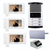 مجموعه دربازکن الکتروپیک مدل FD/1086/3/1294x3-white.شامل : پنل دم دری 1086 با قابلیت دید در شب و مجهز به چراغ LED میباشد . جنس بدنه این پنل آلومینیوم میباشد و دارای سوییچ ضد سرقت است. . گوشی تصویری مدل 1294 الکتروپیک دارای نمایشگر 7 اینچ و دکمه های لمسی میباشد .این مدل گوشی قابلیت اتصال به دو صفحه دم دری , اتصال به دو دوربین امنیتی , ارتباط داخلی یک به یک , قابلیت ذخیره عکس ,ذخیره فیلم ,ضبط فیلمم با صدا ,قابلیت اتصال کارت حافظه را دارد و دارای 15 ملودی زنگ میباشد . همچنین این پکیج دارای منبع تغذیه مدل 386 به همراه قفل زنجیری میباشد . این پکیج کامل بوده و با خرید این مجموعه دیگر نیازی به خرید سایر اقلام نخواهید داشت .