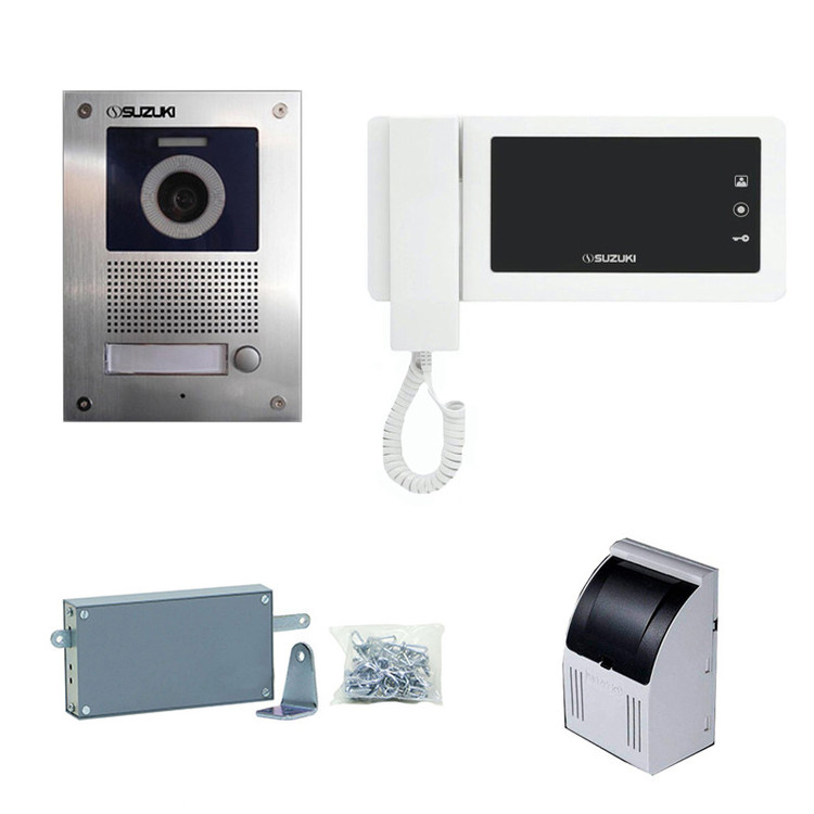 پکیج یک طبقه کامل سوزوکی شامل یک عدد پنل تک واحدی سوزوکی ،یک عدد گوشی 415Mi با حافظه 4.3 اینچ دکمه لمسی و یک عدد ترانس 14ولت سینا و قفل زنجیری می باشد. این پکیج اصطلاحا آماده نصب بوده و نیاز به هیچ وسیله دیگری ندارد. البته سیم کشی ها باید انجام شده باشد.