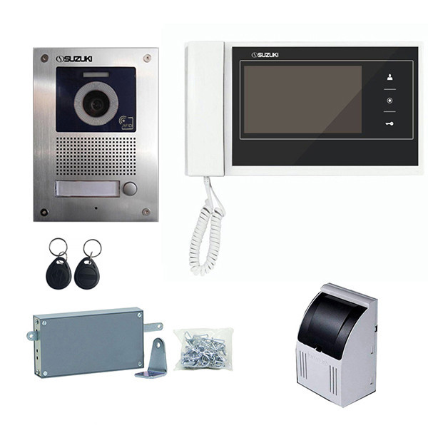 مجموعه 1 واحدی آیفون تصویری سوزوکی با مانیتور 7 اینچی با حافظه دکمه لمسی به همراه پنل 1 واحدی کارتی سوزوکی و قفل و ترانس ارائه می شود . این مجموعه در اصطلاح کامل و آماده نصب می باشد.