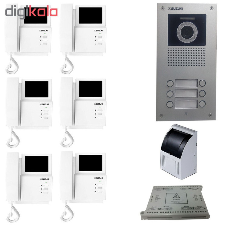 این پکیج شامل یک عدد پنل شش واحدی سوزوکی ،شش عدد گوشی 413i ، یک عدد ترانس 1.5A و یک عدد سوئیچ می باشد. این پکیج اصطلاحا آماده نصب بوده و نیاز به هیچ وسیله دیگری ندارد. البته سیم کشی ها باید انجام شده باشد و درب قفل داشته باشد.