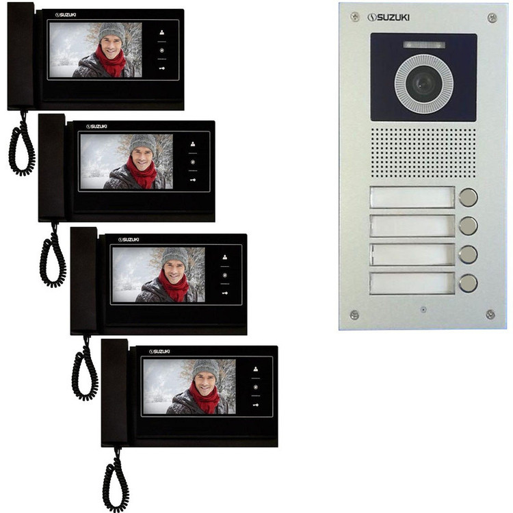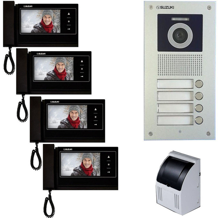 این پکیج شامل یک عدد پنل چهار واحدی سوزوکی ،چهار عدد گوشی 727M مشکی حافظه دار 7 اینچ و یک عدد ترانس 1A می باشد. این پکیج اصطلاحا آماده نصب بوده و نیاز به هیچ وسیله دیگری ندارد. البته سیم کشی ها باید انجام شده باشد و درب قفل داشته باشد.