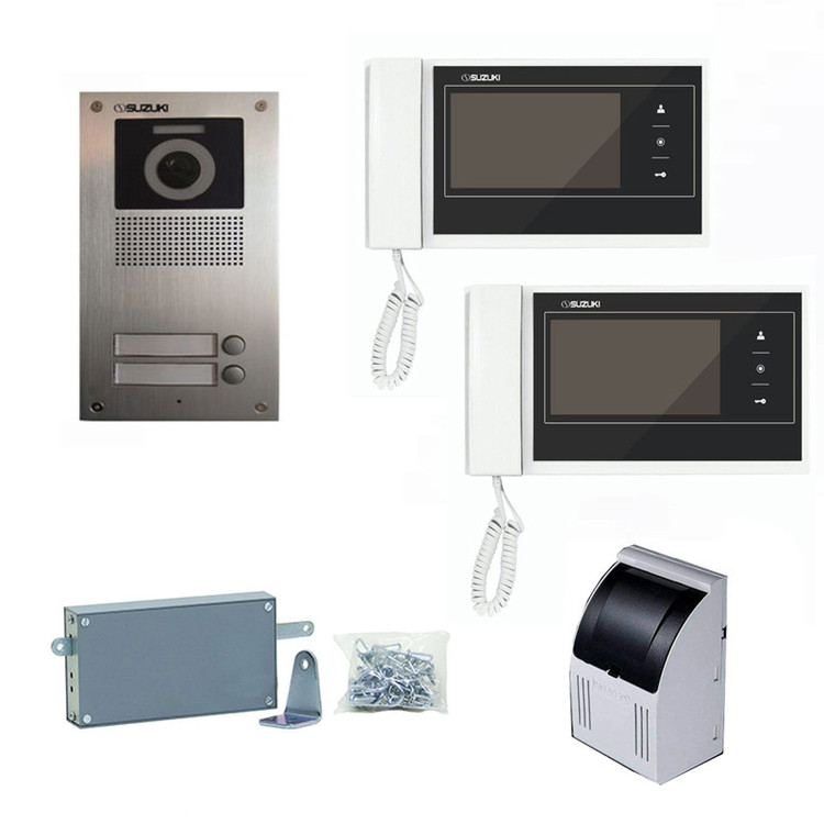 پکیج 2 طبقه کامل سوزوکی شامل یک عدد پنل تک واحدی سوزوکی ،2 عدد گوشی 727Mi با حافظه 7 اینچ دکمه لمسی با رنگ سفید و مشکی و یک عدد ترانس 12 ولت و قفل زنجیری می باشد. این پکیج اصطلاحا آماده نصب بوده و نیاز به هیچ وسیله دیگری ندارد. البته سیم کشی ها باید انجام شده باشد.