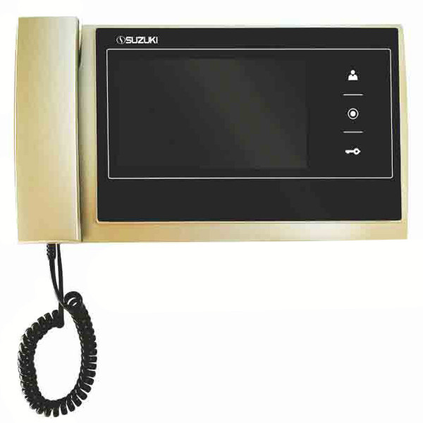 آیفون تصویری سوزوکی مدل 727G بسیار شبیه به آیفون تصویری برند سامسونگ و در عین حال زیبا طراحی شده است. کلید لمسی که در سمت راست مانیتور این آیفون تصویری طراحی شده است توانسته تا ظاهری به روز به این محصول ببخشد. گوشی این آیفون تصویری مقداری از بدنه اصلی آن بزرگتر طراحی شده است که همین امر موجب طراحی خاص این محصول شده است. لازم به ذکر است که این آیفون تصویری به صورت به خصوص فقط در رنگ طلایی طراحی شده است که البته همانطور که می دانید رنگ طلایی قابلیت ست پذیری با تمامی رنگ بندی ها و اسباب منزل را داراست.