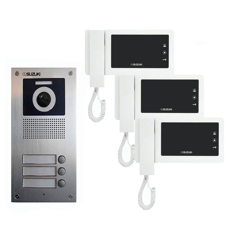 مجموعه سه واحدی آیفون تصویری سوزوکی مدل مانیتور 415M شامل سه عدد مانیتور 4.3 اینچی با حافظه یک عدد پنل 3 واحدی است ، این مجموعه بدون قفل و ترانس است و مناسب افرادی است که قفل و ترانس موجود دارند و نیازی به تهیه آن ندارند. مانیتور 4.3 اینچی سوزوکی دارای قابلیت ذخیره تصاویر مراجعه کننده و دکمه لمسی است کیفیت تصاویر بسیار بالا به دلیل استفاده ار دوربین با کیفیت ژاپنی است .