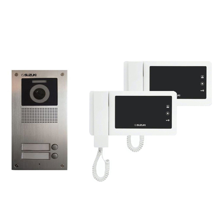 مجموعه دو واحدی آیفون تصویری سوزوکی مدل مانیتور 415M شامل دو عدد مانیتور 4.3 اینچی با حافظه یک عدد پنل 2 واحدی است ، این مجموعه بدون قفل و ترانس است و مناسب افرادی است که قفل و ترانس موجود دارند و نیازی به تهیه آن ندارند. مانیتور 4.3 اینچی سوزوکی دارای قابلیت ذخیره تصاویر مراجعه کننده و دکمه لمسی است کیفیت تصاویر بسیار بالا به دلیل استفاده ار دوربین با کیفیت ژاپنی است .